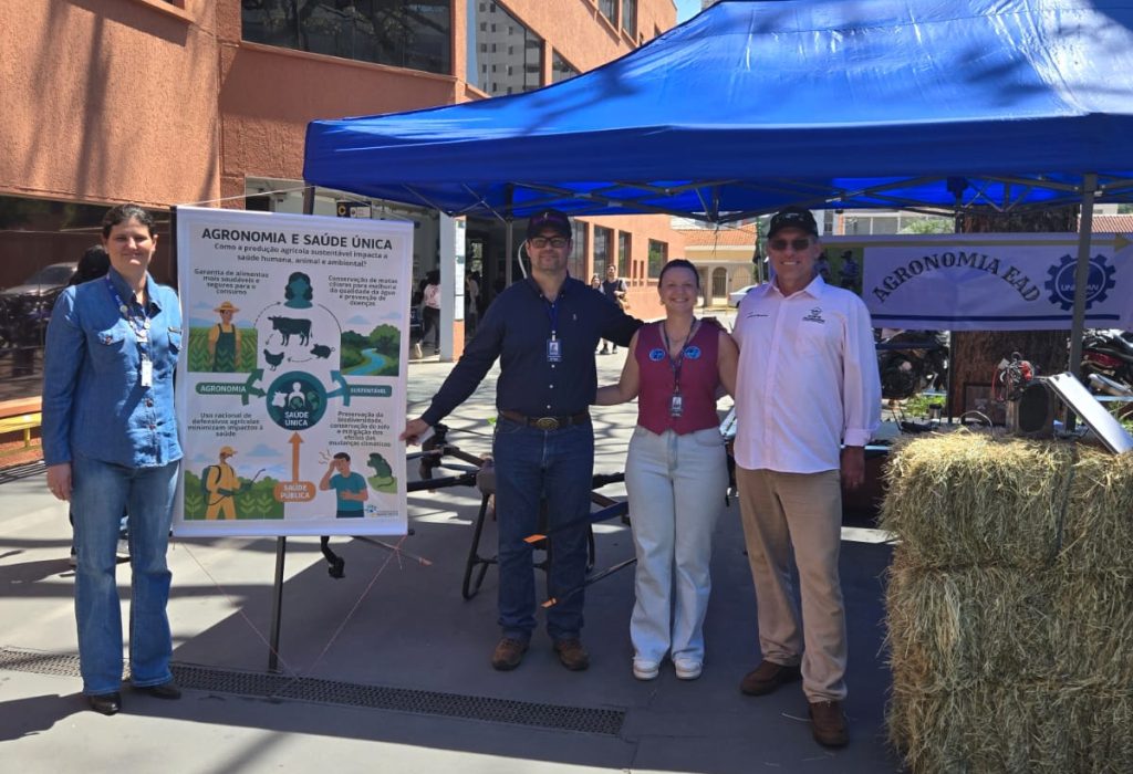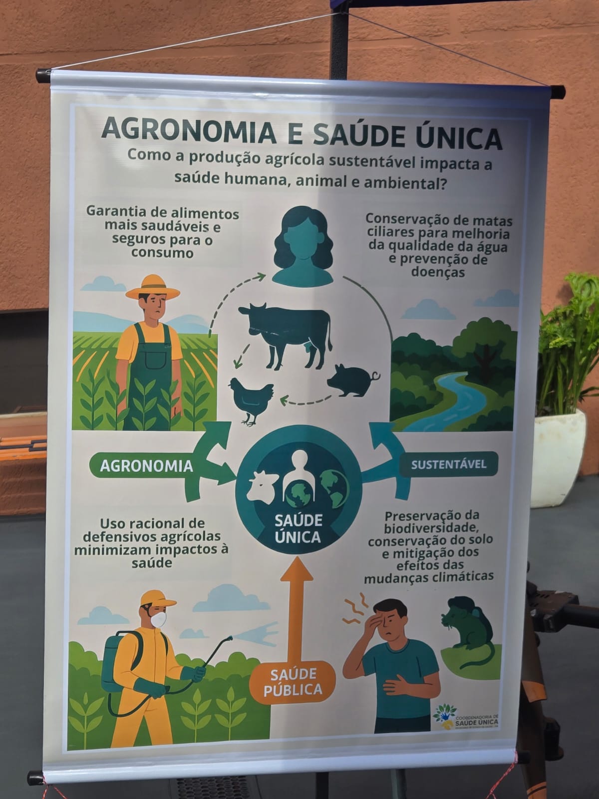 No estande do curso de Agronomia, a Coordenadoria de Saúde Única da SES apresentou como a aplicação prática desse conceito contribui para a proteção da saúde das pessoas, dos animais e do meio ambiente, despertando o interesse dos jovens e mostrando o impacto real da atuação profissional.