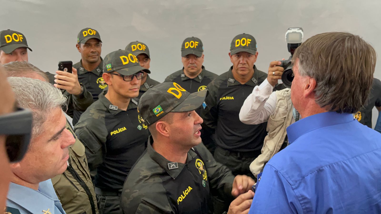 O Diretor do Departamento de Operações de Fronteira (DOF), Coronel QOPM Wagner Ferreira da Silva, em nome de todo efetivo policial do Departamento entregou, ao Presidente Bolsonaro, a Medalha Águia da Fronteira.