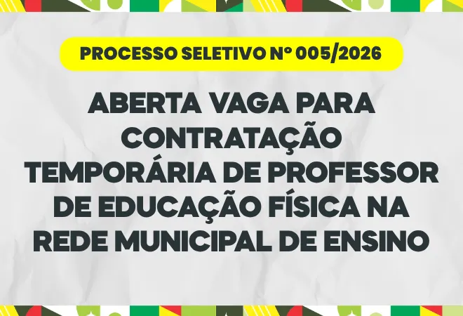 Bataguassu - MS PROCESSO SELETIVO Nº 005/2026: Aberta vaga para professor de Educação Física na rede municipal de ensino