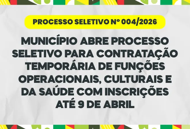 Bataguassu - MS PROCESSO SELETIVO Nº 004/2026: Município abre processo seletivo para contratação temporária em diversas áreas