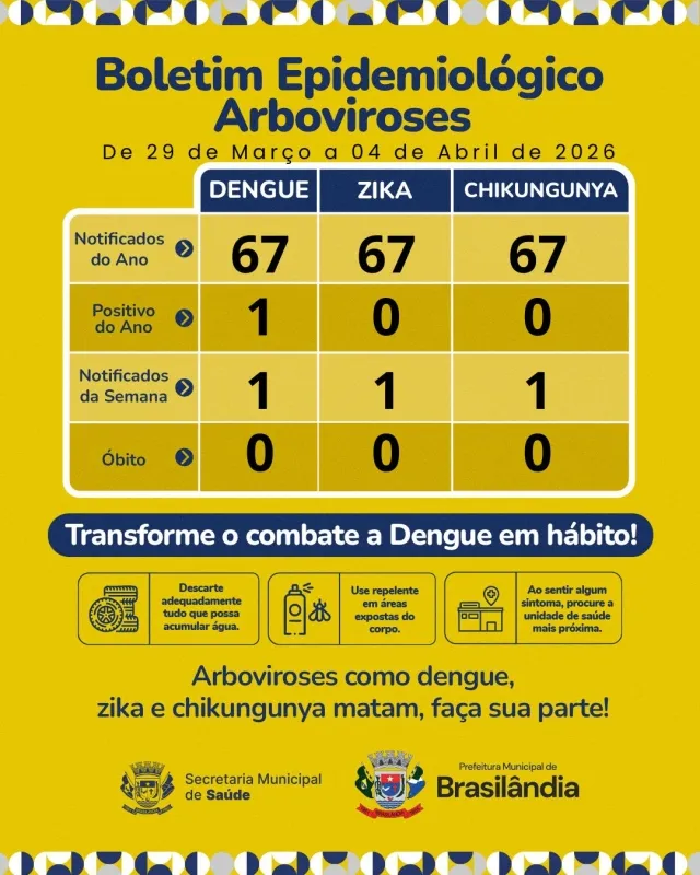 Brasilândia - MS Saúde Brasilândia divulga boletim epidemiológico de arboviroses