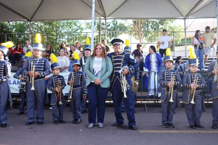 Brasilândia - MS Prefeita Márcia Amaral entrega novos uniformes à FAMBRA em véspera de desfile pelos 61 anos de Brasilândia