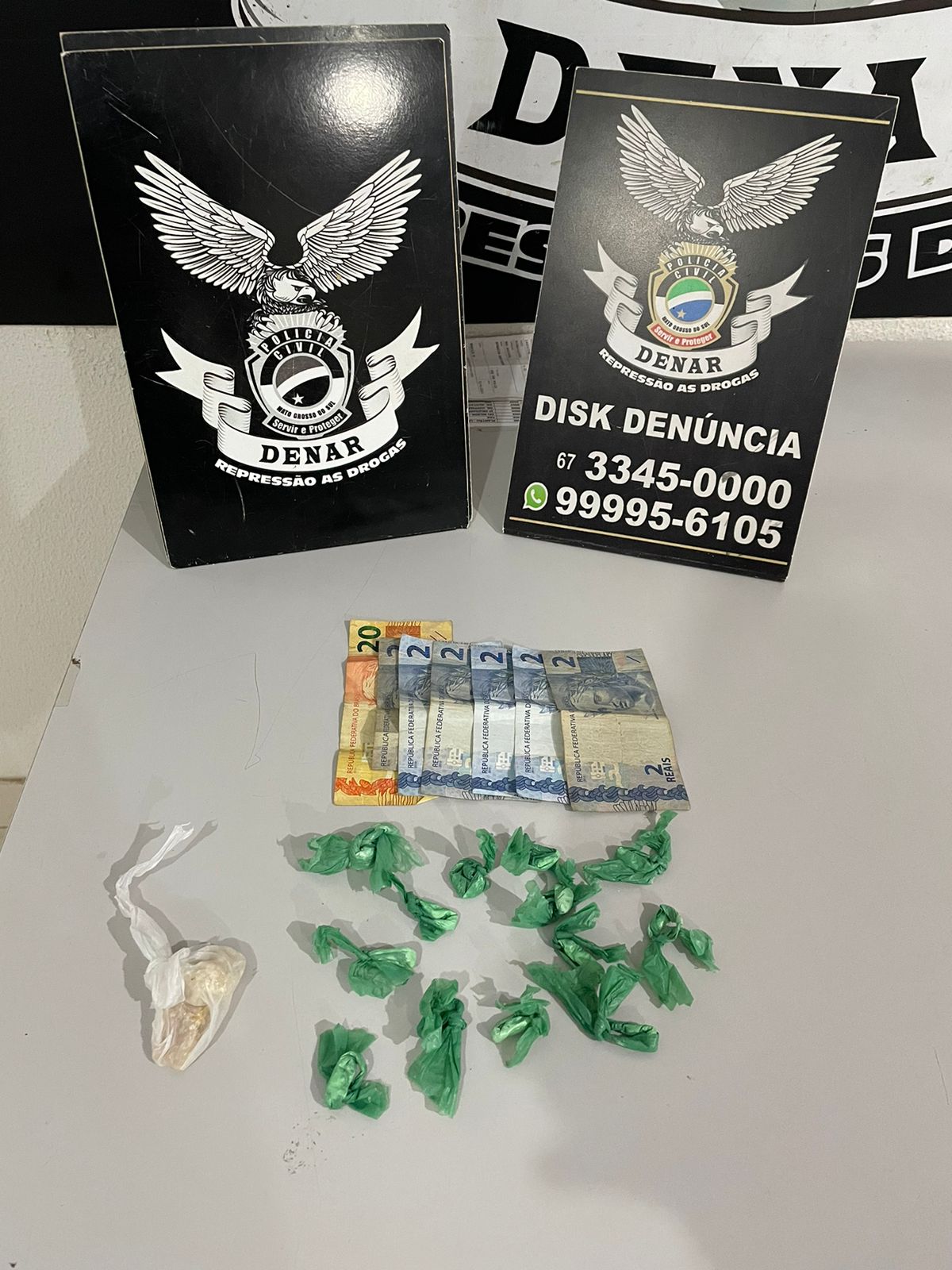 A Polícia Civil, na tarde de ontem, 03/07, prendeu em flagrante por tráfico de drogas um homem de 19 anos, responsável por vender drogas no bairro Guanandi. Conforme o apurado, os policias civis estavam em diligência pelo bairro quando visualizaram a transação do entorpecente, sendo realizada na rua. Diante da fundada suspeita, foi realizada abordagem de J.R.M. na posse de 17 porções de pasta base de cocaína, pesando aproximadamente 23,60g.