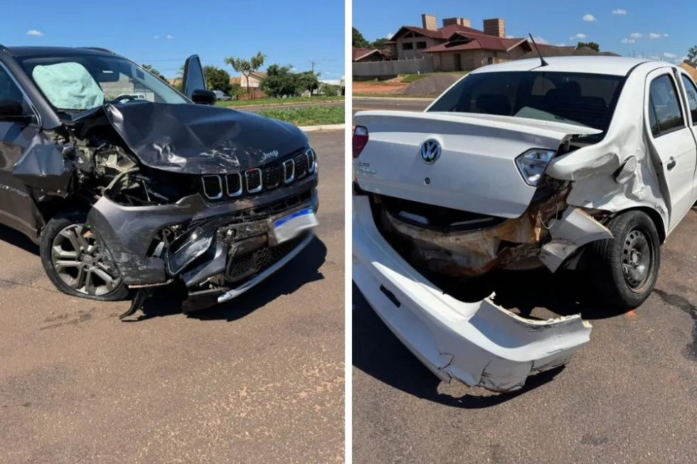 Colisão traseira entre dois carros é registrada na rotatória do Eco Park
